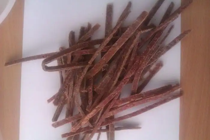 Солёно-сушёные полоски лосося. На самом деле — аналогично тунцу: продукт сурими.