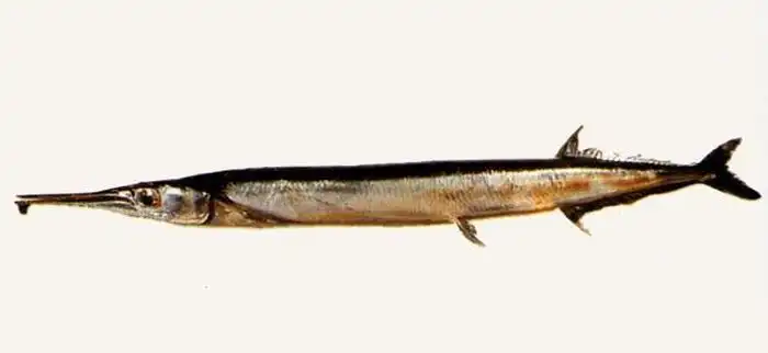 Солёно-сушёная рыба-игла. На самом деле — Tylosurus acus melanotus, действительно рыба, которую можно так назвать.