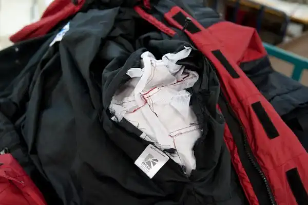 Чехол куртки состоит от трехсот до восьмисот деталей. В изделии оставляются технологические отверстия, через которые оно потом заполняется пухом. Ленточная технология - ноу-хау компании. Благодаря ей в куртках нет ни одного сквозного шва, то есть игла никогда не пробивает всю ткань насквозь.