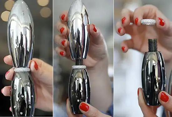 Покрытый белым золотом, этот изящный фаллоимитатор украшен 18-каратным бриллиантовым кольцом. Созданная для богатых людей, которые хотят по-иному показать свои чувства, эта игрушка одна из самых дорогих эротических новинок. Хорошая новость для тех, кто может позволить себе купить дорогой фаллоимитатор — он бывает разных размеров. Разберите его, и Вам на ладонь упадет прекрасное кольцо, усыпанное 177 бриллиантами.