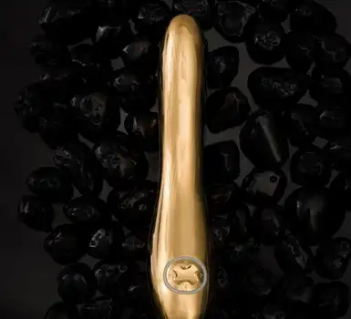 Вибратор, покрытый золотом, сочетающий в себе удовольствие и элегантность в самой красивой упаковке – вот как можно описать эту дорогую грушку. Покрытый 18 каратами чистого золота, вибратор весит примерно 142 гр. Изящная вещица с механизмом, который не дает его внезапно включить, идет в специальной коробке с инструкцией и сатиновым мешочком.