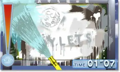 В одной из игр, например, требуется стереть графитти, поливая их из «шланга»: