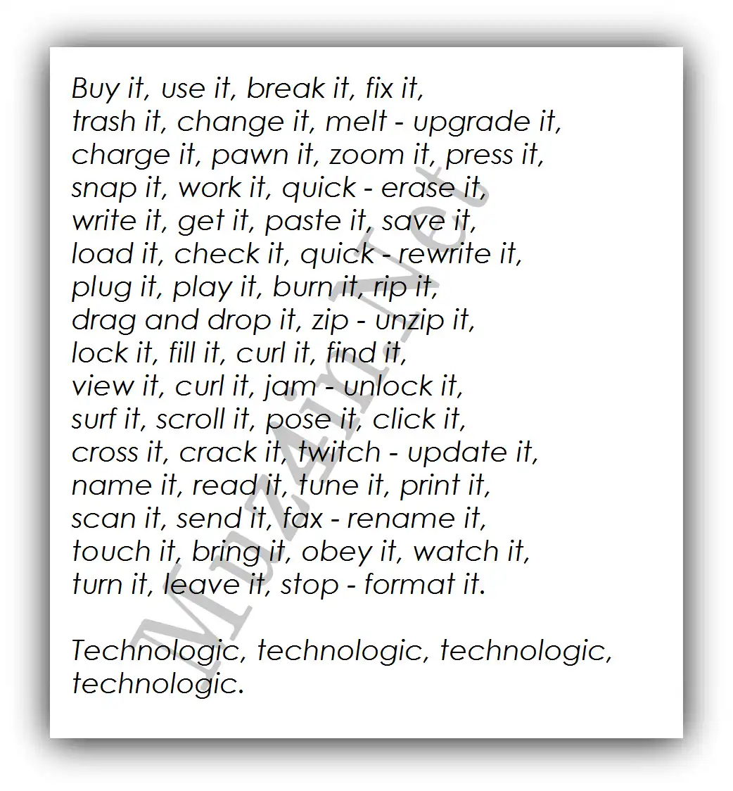 Для тех кто не догадался. ОТВЕТ: На картинке зашифрован текст песни Daft Punk - Technologic