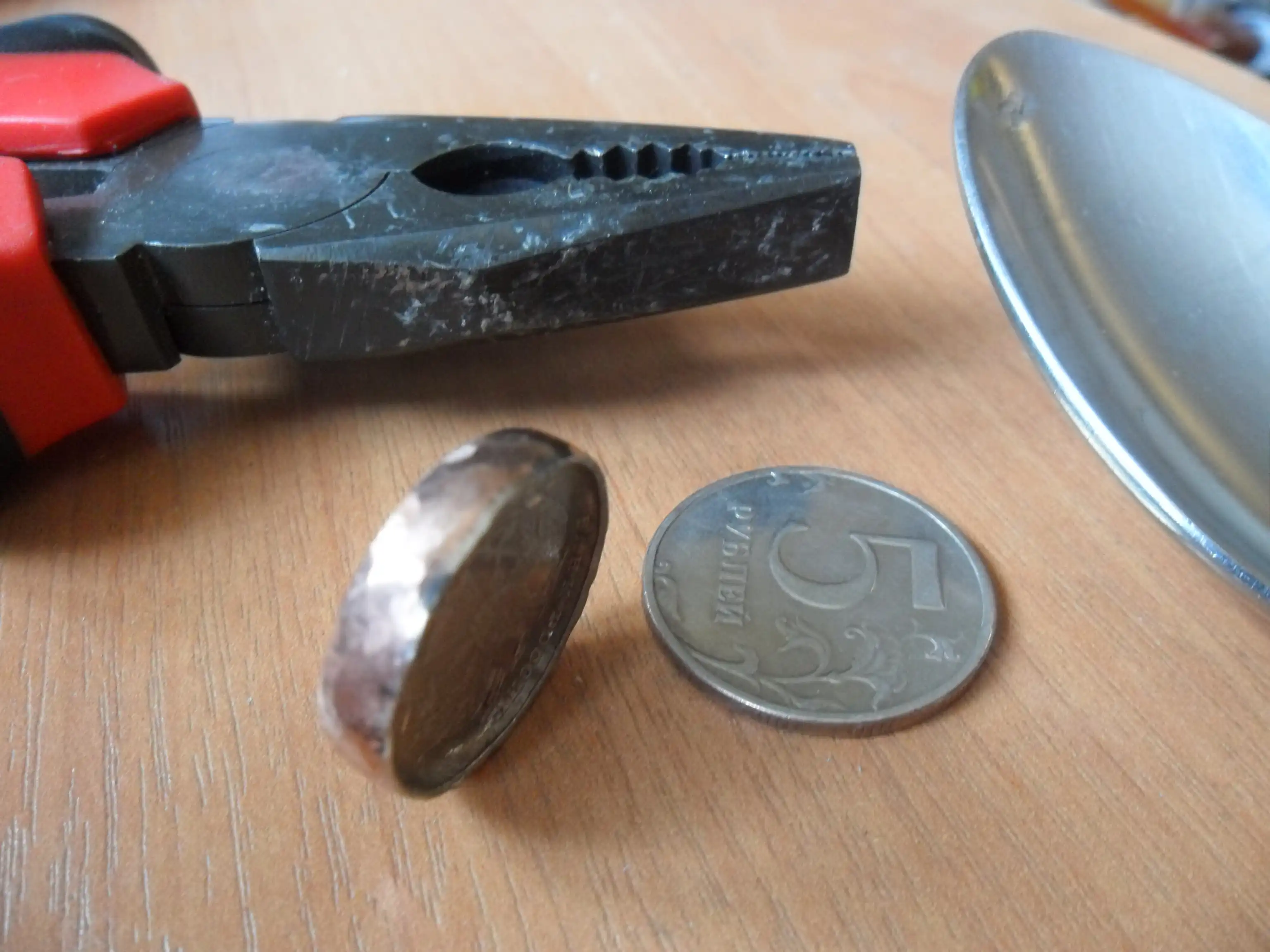 Если решите повторить, то могу посоветовать взять какую-нибудь серебряную монету (думаю, ее легче будет обработать). На е-бэе продаются классные серебряные монетки доллара по 4 с доставкой.