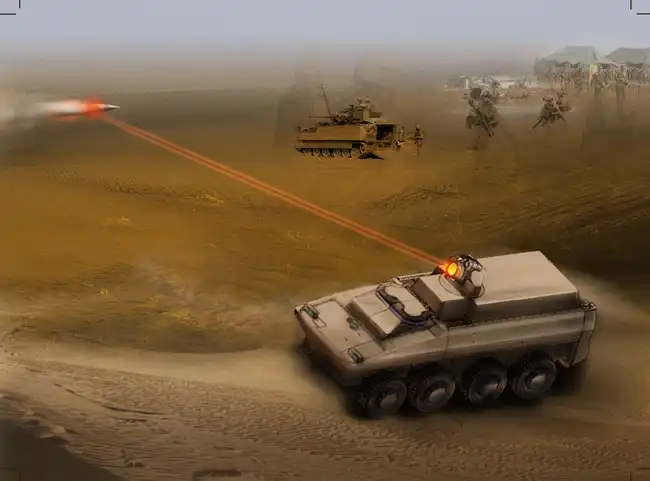 Демонстратор JHPSSL от компании Northrop Grumman и и ниже её видение будущего мощных лазеров на поле боя.