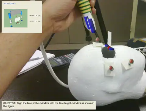 Для начала инженеры позаботились об ультразвуковой диагностике (УЗИ). Излучатель в руках человека отслеживается инфракрасной камерой, также аппаратура вычисляет положение нужного участка пациента с помощью нескольких маркеров.