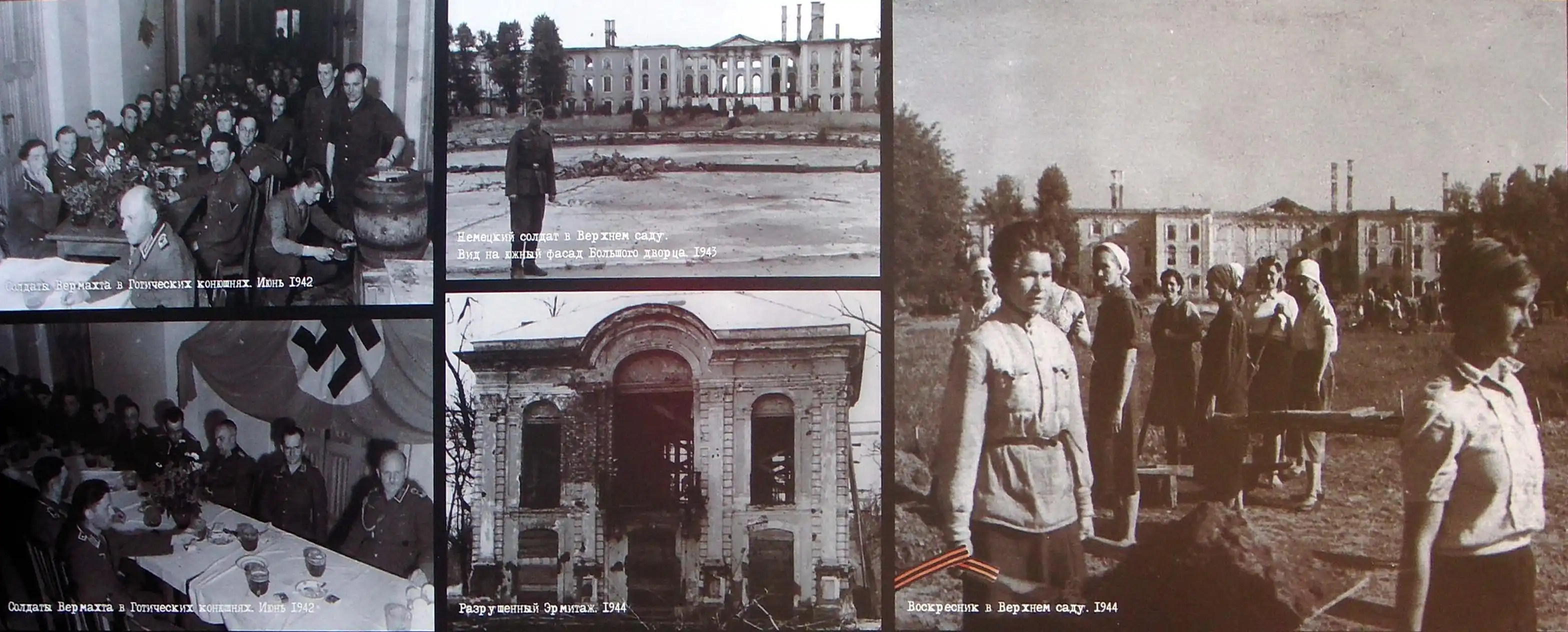 Это не хорошо знакомая официальная фотохроника военных корреспондентов, а снимки из семейных архивов немецких солдат. Как сегодня пикники, детские праздники и юбилеи, они в 1941–1943 снимали себя. На руинах и в царских интерьерах.