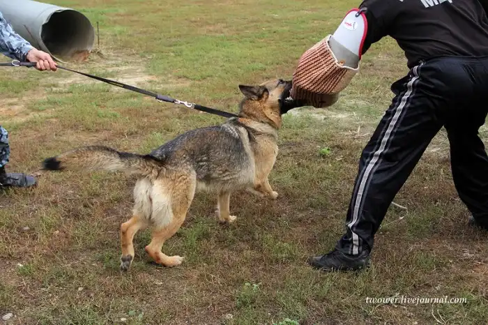 Атаковать собаке человека достаточно тяжело в моральном плане, многие этого просто боятся. Для дрессировки на злобу кинологу иногда приходиться поддаваться, изображать испуг, чтобы пес поверил в свои силы и не боялся атаковать существо в несколько раз больше себя по габаритам.