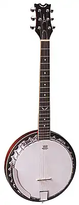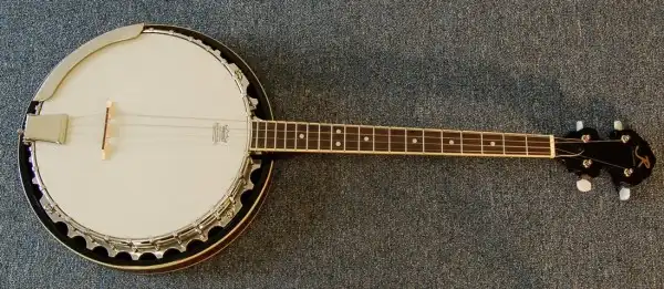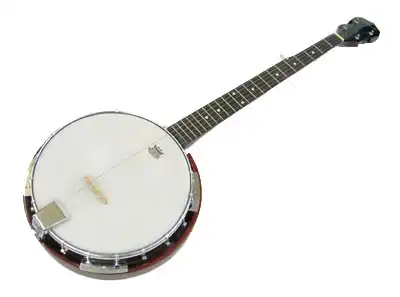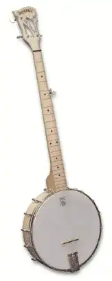 Банджо - струнный щипковый музыкальный инструмент с корпусом в виде бубна и длинной деревянной шейкой с грифом, на котором натянуто от 4 до 9 жильных струн. Род гитары с резонатором (расширенная часть инструмента крыта кожей, как барабан). Томас Джефферсон упоминает о банджо в 1784 году - вероятно, инструмент был завезен в Америку черными невольниками из из Западной Африки, где его предшественниками были какие-то арабские инструменты. В XIX веке банджо стал использоваться менестрелями и таким образом проник в ранние джазовые коллективы в качестве ритмического инструмента. В современной Америке словом "банджо" обозначается либо его теноровая разновидность с настроенными по квинтам четырьмя струнами, нижняя из которых - до малой октавы, либо пятиструнный инструмент с иной настройкой. Игра на банджо осуществляется с помощью плектра.