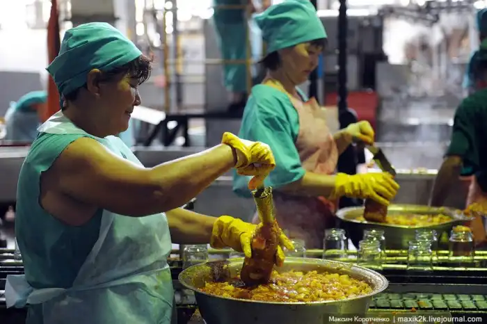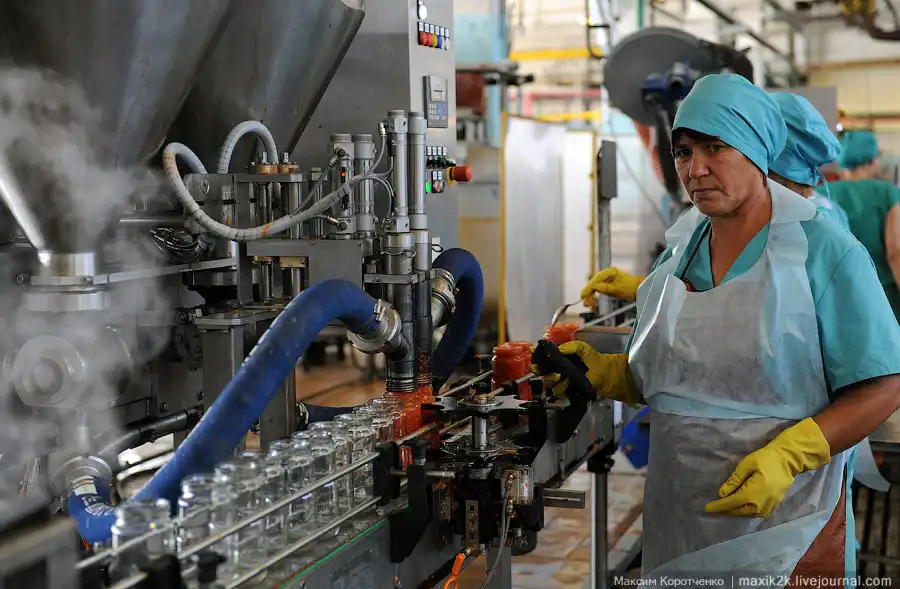 На консервных заводах пик производства – поступает только что собранный урожай овощей. Небольшой фоторепортаж о том, как перчики и помидоры закатываются в стеклянные банки.