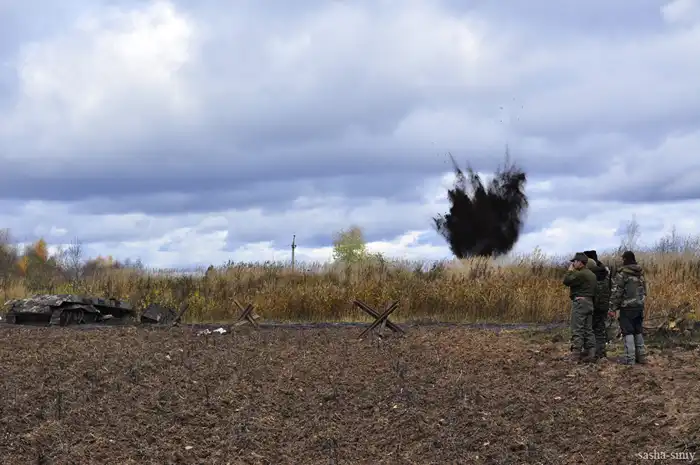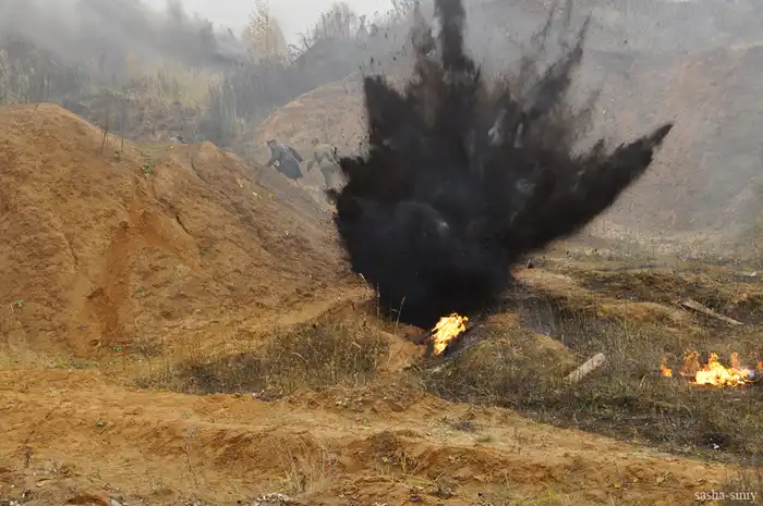А потом меня засыпало землей. По следам на земле я потом увидел, что взрыв был направлен прямо на меня :) Землю я потом вытаскивал из-за шиворота и из карманов пол дня. Лицо было черным, а тело немного потрясывало :) Но оно того однозначно стоило! Ощущения, когда ты находишься рядом с мощным взрывом непередаваемые!