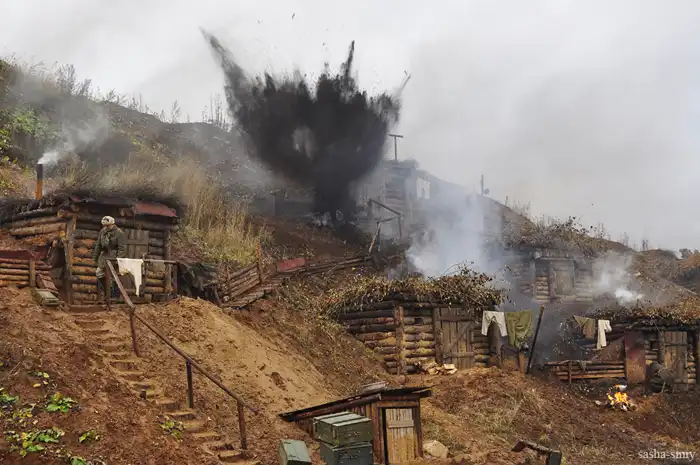 Сцены, на съемках которых я присутствовал, происходят в окопах, в самый разгар Сталинградской битвы. Потому взрывов было предостаточно. Сегодня я хочу вам рассказать, как делаются киновзрывы.