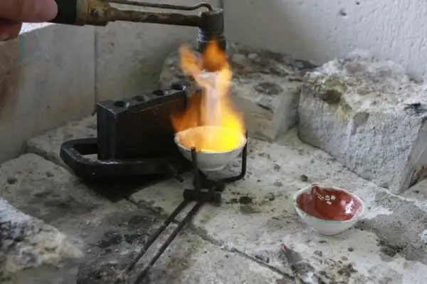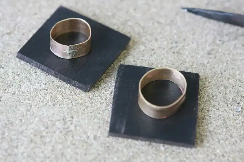 Полоски золота нужно нагреть и оставить остывать, чтобы они стали мягкими. Этот процесс называется отжигом.