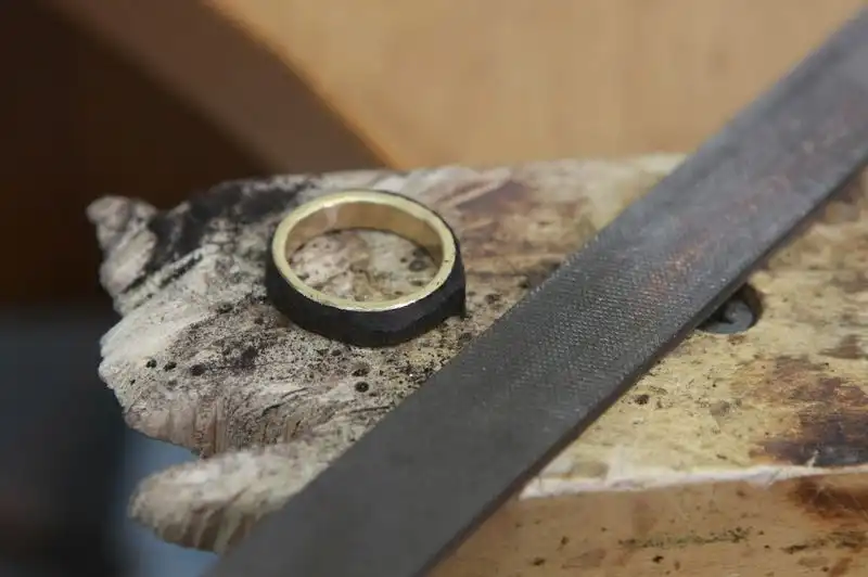 И расклепываем золото на дереве) Для этого момента нам и нужен был отжиг, чтобы металл не треснул от внутренних напряжений
