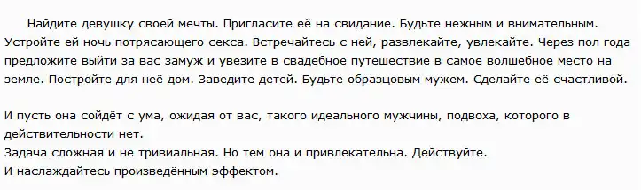 Краткое пособие для пресыщенных женским вниманием мужчин.