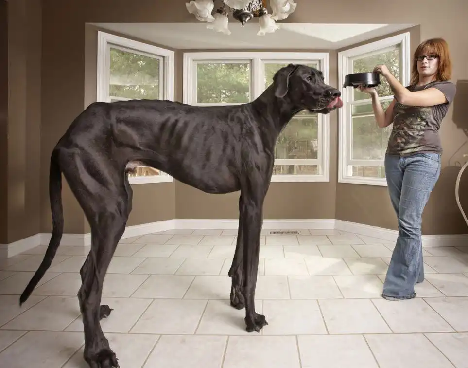Самую высокую собаку среди ныне живущих зовут "Зевс". Высота гиганта составляет 1.12 м, а живет он в США