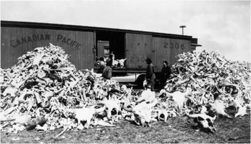 Бизонов также убивали ради развлечения: американские железнодорожные компании в рекламе привлекали пассажиров возможностью стрелять по бизонам из окон вагонов. В 1887 году английский натуралист Уильям Гриб, который проехал по прериям, отметил: Повсюду виднелись бизоньи тропы, но живых бизонов не было. Лишь черепа и кости этих благородных животных белели на солнце.