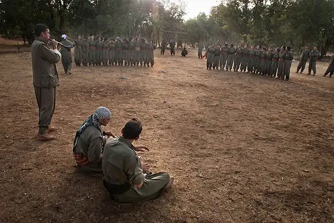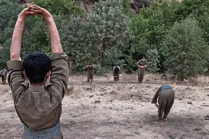 В традиционном курдском обществе женщине отводится подчиненная роль. Но на военной базе курс физической подготовки одинаков для мужчин и для женщин.