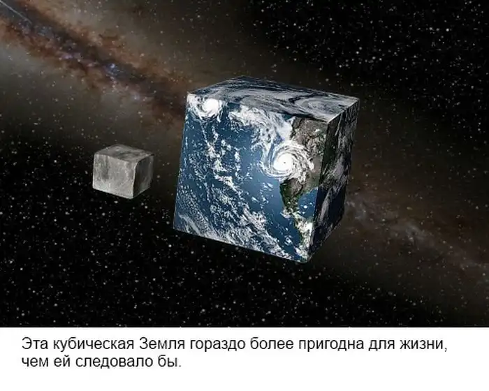 Я думаю, что сложная жизнь вряд ли сумела бы эволюционировать на кубической Земле. Тем не менее, если бы она таки смогла, её космическая программа была бы проста, как долгая прогулка, и их выдающиеся физики тратили бы время в гадании — на что могла бы быть похожа жизнь на круглой планете.