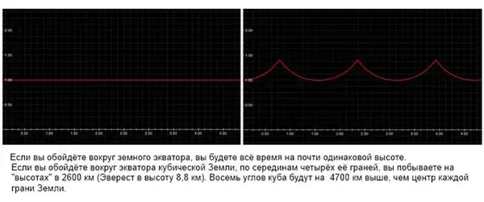 Жизнь на кубической Земле будет сильно отличаться от той, к которой мы привыкли. Хотя гравитация на поверхности не будет, в общем, направлена точно в центр Земли (это свойственно только сферам), она по-прежнему будет направлена примерно в центр. Таким образом, во время приближения к рёбрам куба вы будете чувствовать, будто находитесь на склоне. То есть, хоть это и не будет выглядеть таким образом, по ощущениям каждая из шести граней куба будет являться чашей. И у этого явления будут весьма важные последствия.