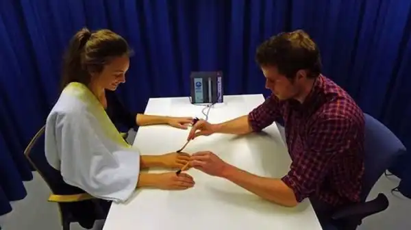 В то же время другой рукой он касается своего носа и начинает слегка поглаживать оба носа. Примерно через минуту больше 50% людей заявляют, что их нос удлиняется.