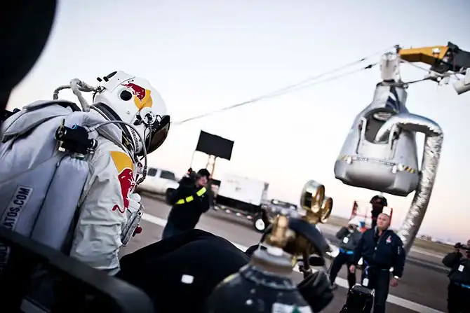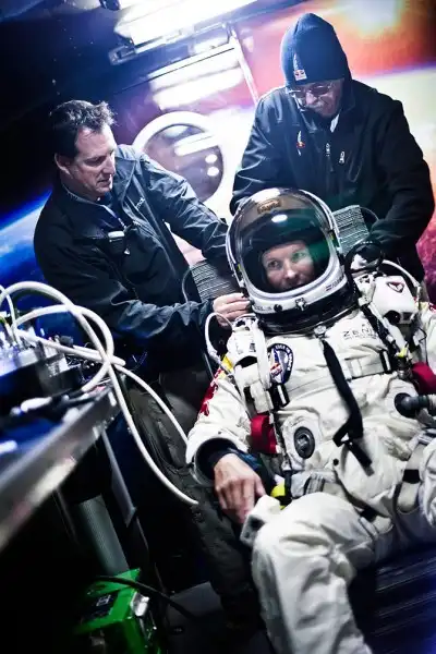 Сначала планировалось совершить прыжок с высоты 36 километров. Однако только на уровне 39 километров австрийцу Баумгартнеру удалось замедлить неконтролируемое поднятие несущего защитную капсулу огромного стратостата, выпустив из него часть гелия. Затем «Феликс бесстрашный», как теперь зовут его в родных местах, сделал шаг в космос…