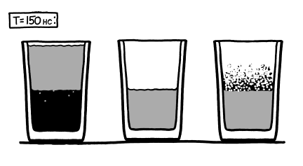 Пока поверхность воды в обоих стаканах начинает закипать, в стакане справа воздух прорывается внутрь. Стакан слева продолжает заполняться небольшими капельками воды.
