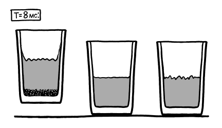 В это же время стакан слева начинает заметно приподниматься в воздух.