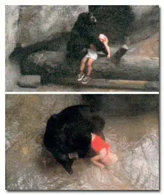 18 августа 1996 года в зоопарке города Брукфилда (Иллинойс, США) на эту самую территорию вторгся трёхлетний мальчик – залез на ограду, отделявшую вольер с гориллами от зрителей, и свалился с неё прямо к обезьянам. Высота ограждения была около пяти метров, ребёнок сильно ударился головой и потерял сознание.