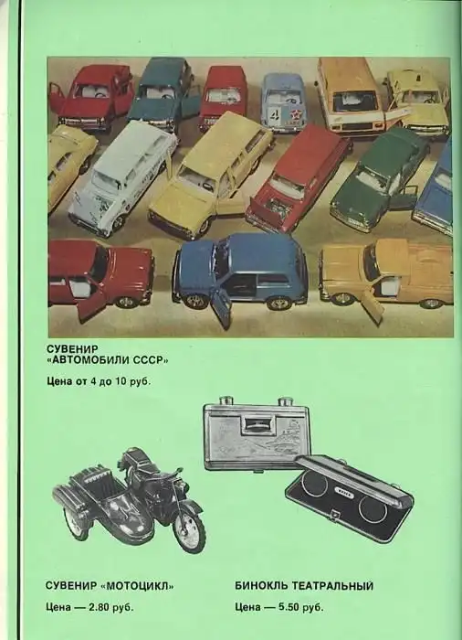 Коллекционные машинки были дороги — от 1 до 3 тысяч, сувенирный мотоцикл — 700 рублей, бинокль — полторы штуки.