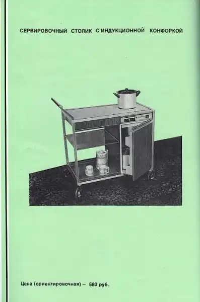 А вот этой разработке я нигде не видел даже аналогов. Сервировочный столик с индукционной конфоркой, чтобы подаваемое заботливой хозяйкой блюдо не остыло по дороге из кухни в столовую. Правда, 150 000 рублей отпугивают — но на то она и новинка, чтобы стоить дорого.