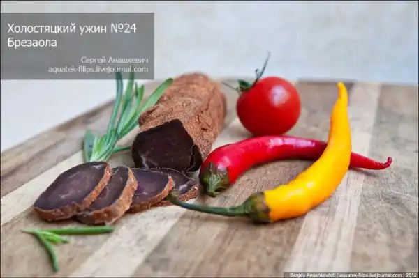 И вот, неделю спустя, можно снимать марлевую пижаму с брезаолы и, нарезав тонкими ломтиками, наслаждаться вкусным продуктом по итальянскому рецепту