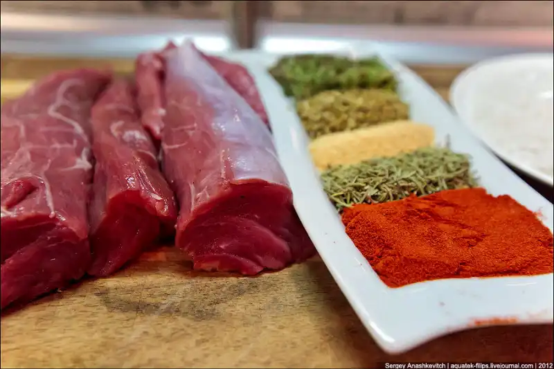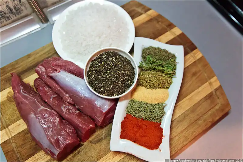 - говяжья вырезка - 1 кг. Ради эксперимента последующие разы я делал брезаолу из цельной говяжьей поясничной мышцы. Получилось не хуже, так что можно не переплачивать за вырезку;