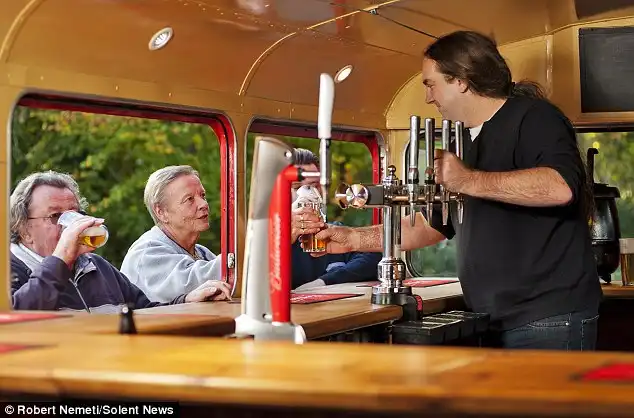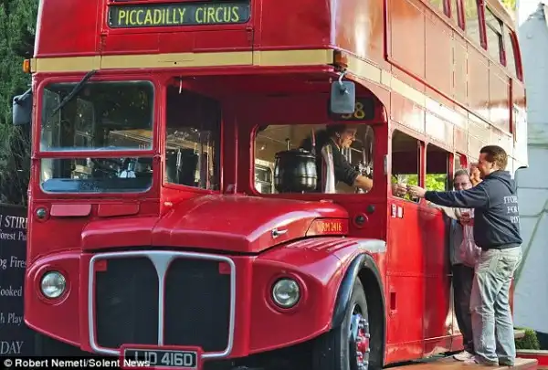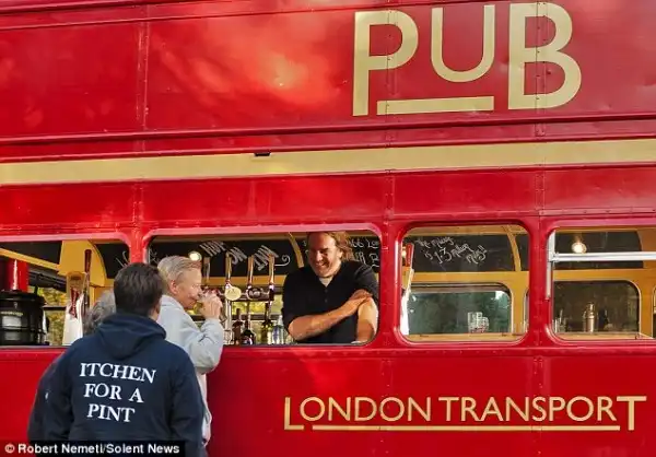 Вложив в него 14 000 фунтов, он переделал нижний этаж в бар с пивными насосами. На втором этаже сиденья заменили удобными стульями, а часть крышу убрали и заменили тентом, который будет сниматься в теплые солнечные дни, которые в Англии не так много.