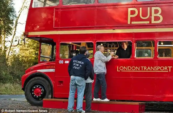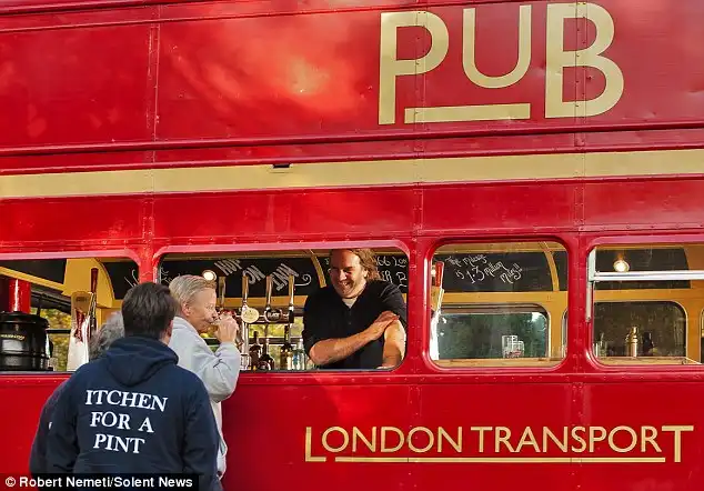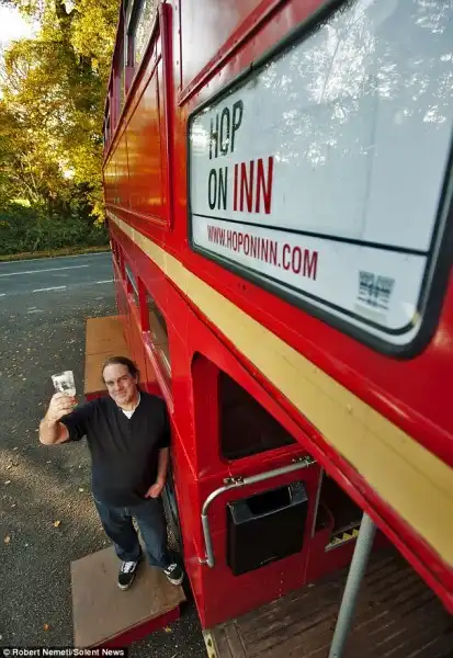 41-летний предприниматель Колин Флиттер за 18 500 фунтов купил на аукционе eBay двухэтажный автобус Routemaster и превратил его в паб под названием Hop On Inn, что переводится как «мигрирующий трактир».