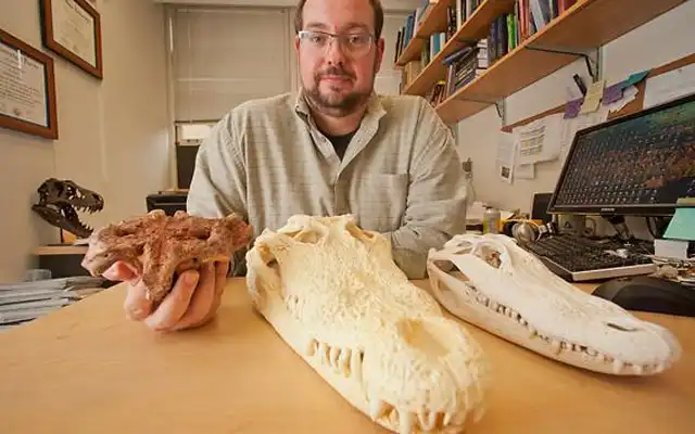 Получивший название "крокодил-щит" за свою плоскую голову, крокодил вида Aegisuchus witmeri является самым древним предком современного крокодила, который был обнаружен в Африке. Первоначально образцы окаменелых останков этого существа были найдены в Марокко, которые затем были отправлены в тот же Королевский музей Онтарио и пролежали на полке несколько лет перед тем, как ученые обратили на них внимание.