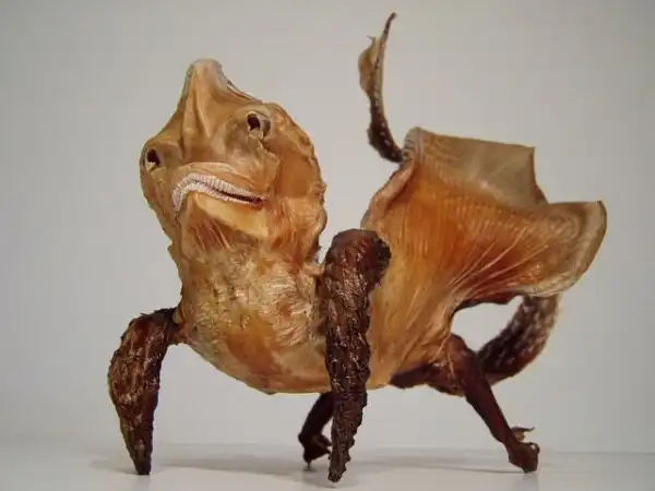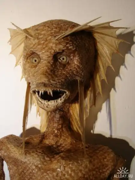 Свои творения Хуан создает из реальной плоти некогда живых рыб и существ, из реальной чешуи, из костей и скелетов.