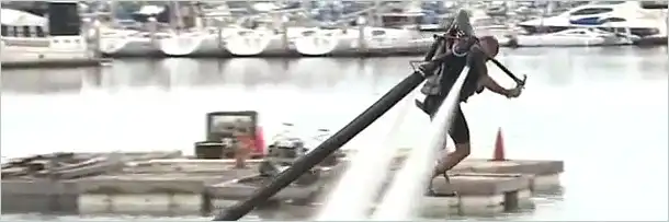 К счастью для Джона, команда новостей смогла успокоиться и он всё-таки смог доказать, что Джетлев-Флаер отлично работает, взлетев, как Джеймс Бонд над водой. Если вам когда-нибудь хотелось покувыркаться на телевидении с помощью ракетного ранца, вы можете купить его за «небольшую» цену в 100 тысяч долларов.