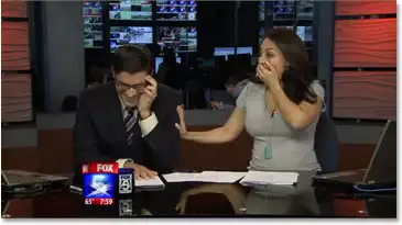 Камера переключается на ведущих новостей, которые отреагировали так же, как и все телезрители: