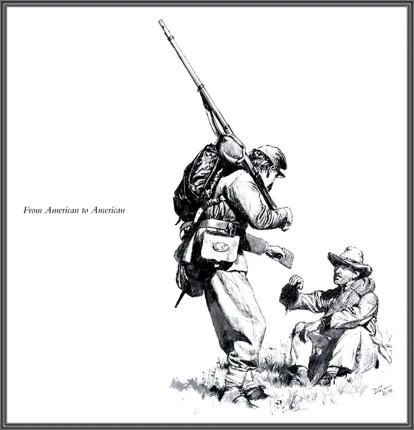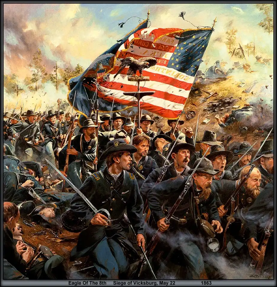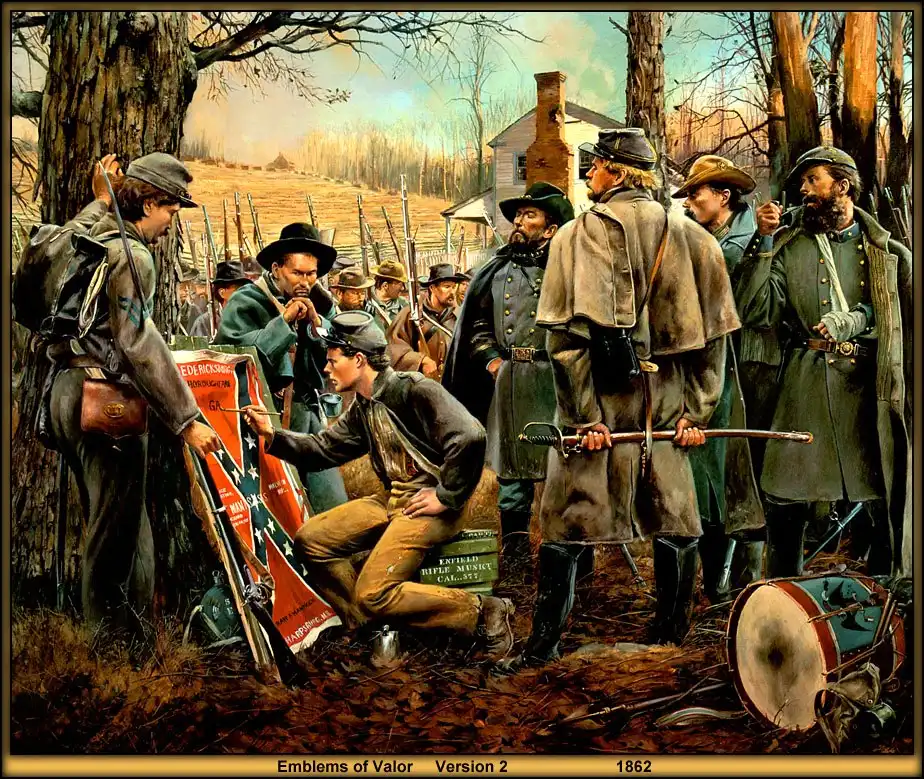И тогда и сейчас тема Гражданской войны в США привлекала многих художников (естественно, преимущественно американских). В их числе и Дон Трояни.Мало кто может с ним сравниться в изображении батальных сцен. А так же точности и достоверности изображения деталей обмундирования и снаряжения.
