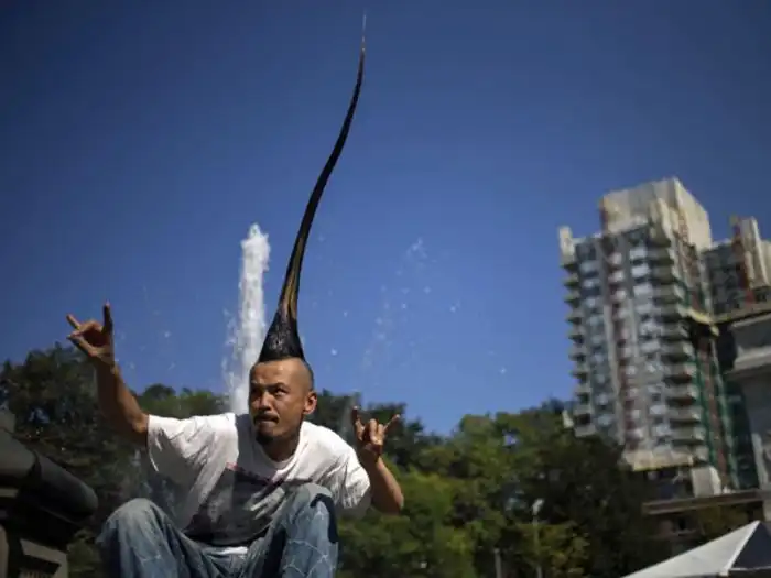 Японский модельер Кацухиро Ватанабе мировой рекордсмен по самому высокому ирокезу из натуральных волос.