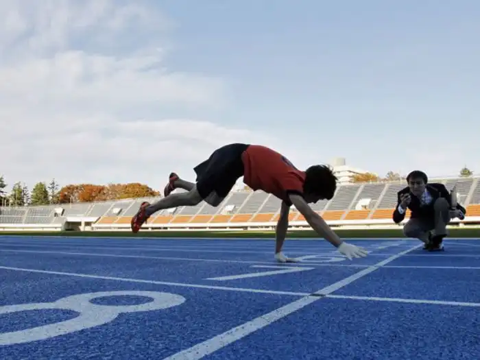 Кеничи Ито, известный, как самый быстрый бегун на четырех конечностях, устанавливает