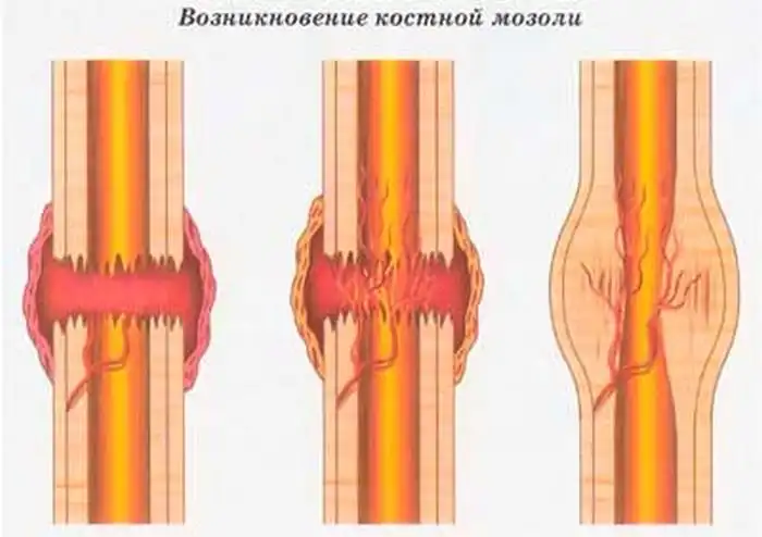 На месте сращенного перелома кости образуется костная мозоль, структура настолько плотная,