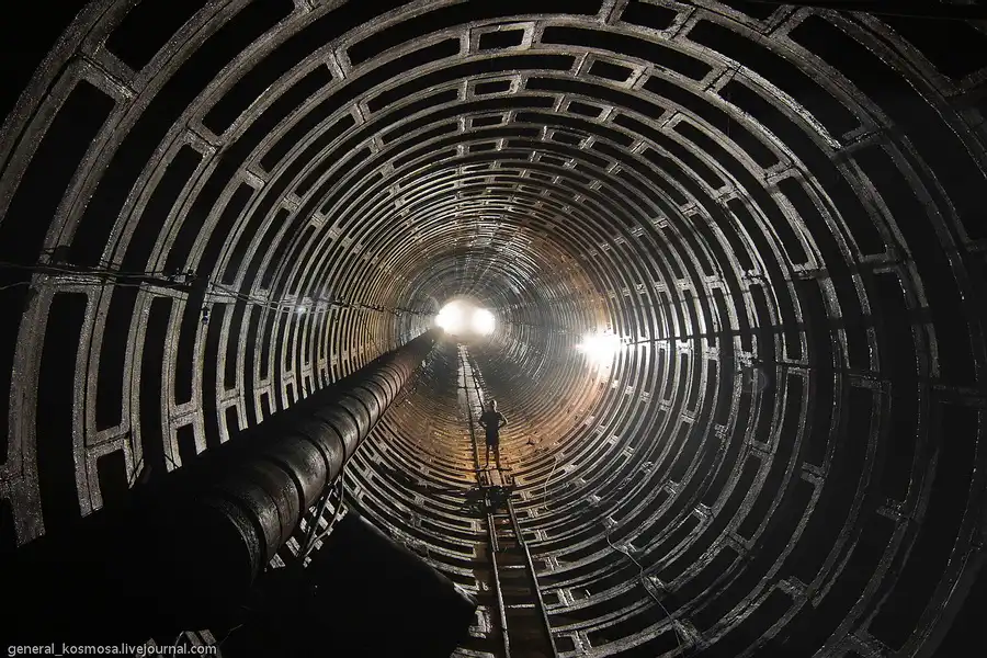 Здесь туннель диаметров в 4 метра выходит в основной блок бункера.