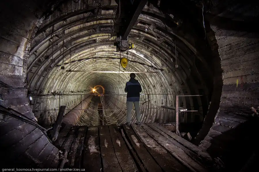 Так выглядит штольня ведущая к перегону "Крещатик" - "Арсенальная".