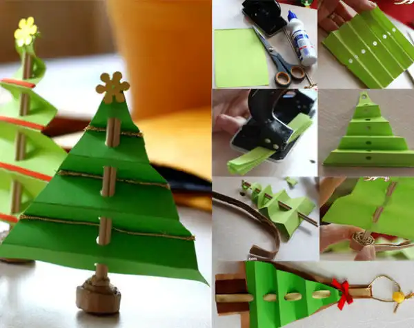 Елочка выполнена из полос бумаги прямоугольной формы, сложенных гармошкой.