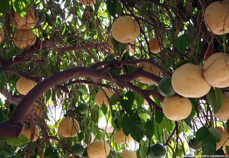 Зрелые фрукты висят на длинных стеблях и весят до 2 кг.