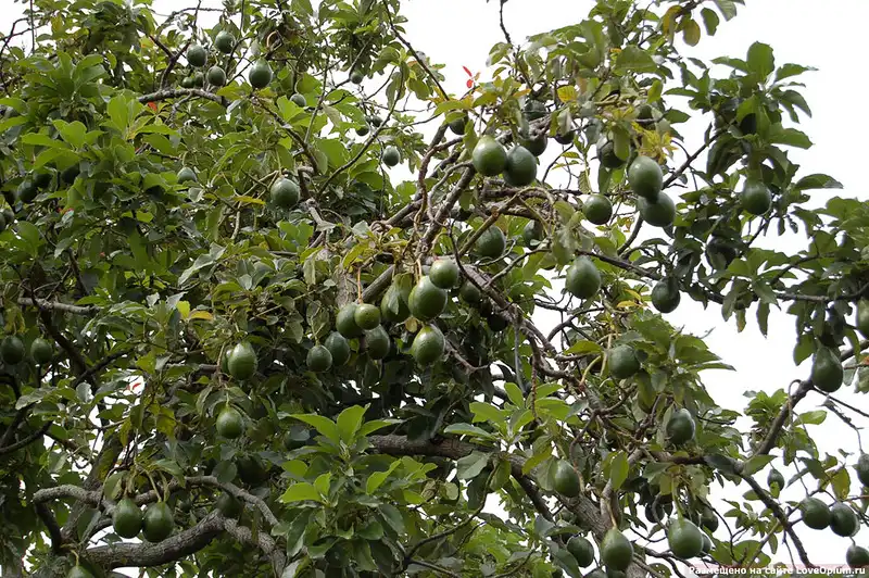 Английское название дерева авокадо и одноименных плодов — alligator pear («аллигаторова груша»). Авокадо — быстрорастущее дерево, достигающее в высоту 18 метров. Ствол обычно прямой, сильно ветвится.