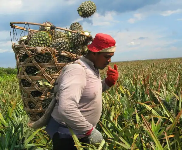 Ананасы весят от 2 до 15 кг и внешне напоминают большую шишку: