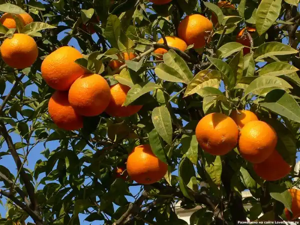 Апельсины растут на апельсиновых деревьях высотой до от 4-6 до 12 метров.